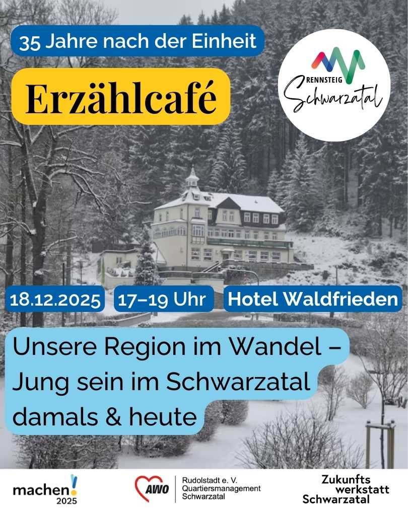 Im Erzählcafé sprechen wir darüber, wie sich das Schwarzatal verändert hat: Wie war es, hier jung zu sein – damals? Und wie ist es heute? Welche Chancen, Brüche, Aufbrüche und Gefühle verbinden wir mit der Region?
